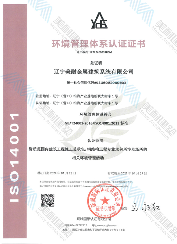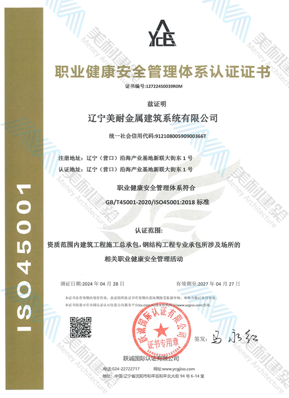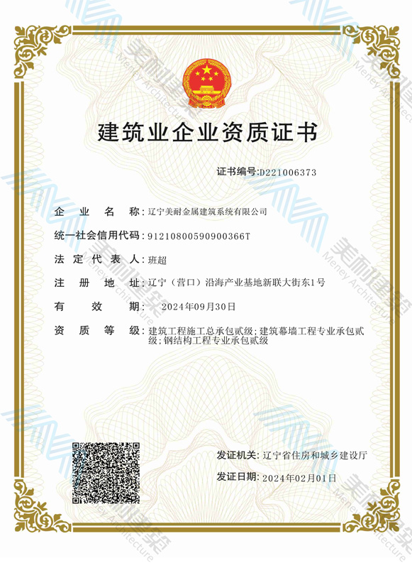 遼寧美耐金屬建筑系統(tǒng)有限公司位于遼寧(營口)沿海產(chǎn)業(yè)基地,專注于預(yù)制金屬建筑系統(tǒng)領(lǐng)域,是一家集工業(yè)建筑設(shè)計、制作、施工及相關(guān)的技術(shù)咨詢與服務(wù)為一體的綜合性服務(wù)企業(yè)。作為國家鋼結(jié)構(gòu)協(xié)會會員、中國建筑金屬結(jié)構(gòu)協(xié)會會員單位與國家高新技術(shù)企業(yè),美耐建筑集建筑工程施工總承包、鋼結(jié)構(gòu)工程專業(yè)承包等多種資質(zhì)于一身,并擁有22項(xiàng)鋼結(jié)構(gòu)建筑領(lǐng)域?qū)@?項(xiàng)軟件著作權(quán)。